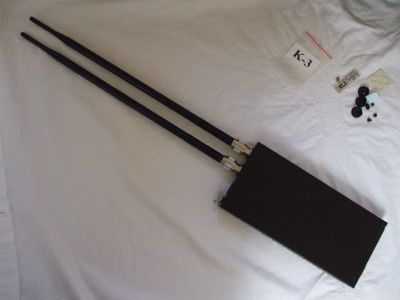 | Caption: | Top view with with two N-pigtails and -antennas (pigtails and antennas not included in enclosure package). Antennas are ALFA ARS-N19CW, 2.4GHz 9dBi omni-directional. |