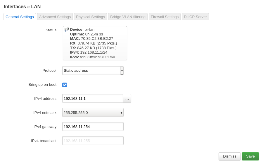 Set static IP with Luci web interface