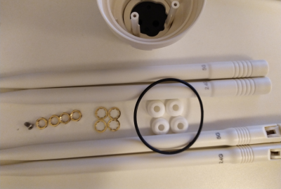 Remove the antenna and the silicone rubber boots, then the SMA connector nut and washer for all for antennas. Then gently unscrew the bottom cap, there is an o-ring between the cap and the body, dont damage it. Slide out of bottom with ease.
