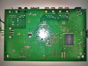 The Fritz!Box 7320 got a 3.3V TTL level serial port giving you bootloader and Linux console access.