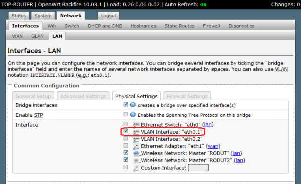 o) Go to Network / Interfaces / LAN / Physical Settings and do the following: