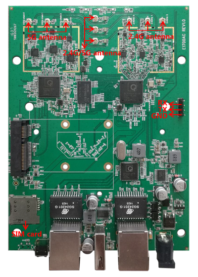 - 3T3R 2.4 GHz (QCA9563) with external FEM (SKY85309-11)
